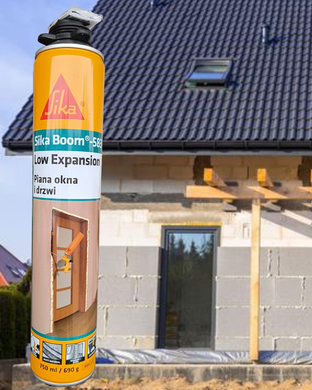• Sika Boom®-583 jest jednoskładnikową, aplikowaną pistoletem, pęczniejącą, poliuretanową pianką montażową niskoprężną, o niewielkim pęcznieniu wtórnym. Dzięki tym właściwościom Sika Boom®-583 może być stosowana do aplikacji wrażliwych na nacisk, takich jak wypełniania szczelin wokół ościeżnic okiennych i drzwiowych.